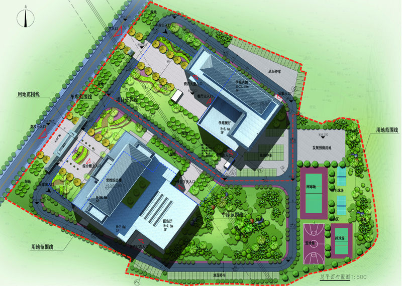 黨校新校區項目選址于桃花源街道東流口村4組(小地名:五家灣),距離現黨校有11.8公里,項目用地面積為48.5畝。總建筑面積:25613.00m2(其中綜合樓建筑面積:11871.00m2,學苑賓館建筑面積:13742.00m2),設計綜合樓1棟、學苑賓館1棟、地下車庫、大門,能滿足培訓、辦公、會議、就餐和住宿等功能。