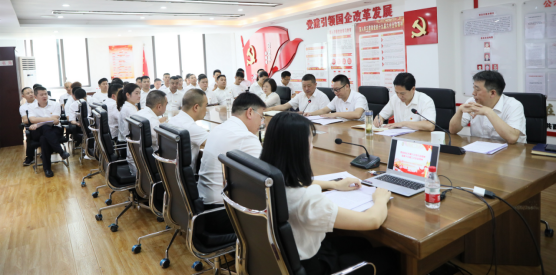 [5月27日訊 劉昌斌/陳鵬] 5月27日下午,酉州實業集團黨總支組織開展理論學習中心組學習,集團公司班子成員,各部室、子公司主要負責人參加學習?h財政局(國資辦)黨委副書記、縣國資中心主任陳早,縣..